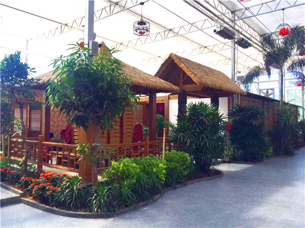 我公司承建的生態(tài)餐廳,克服了種植溫室“易結(jié)露、視野小”的弊端,以“大空間、環(huán)保”為概念,設(shè)計開發(fā)了高屋脊、大跨度、大開間的專用類型,有1688型(棟寬16米,柱高8米、開間8米)和120型(棟寬12米、柱高6米、開間4米),覆蓋材料采用玻璃或PC板,外觀造型美觀,恢宏大氣,內(nèi)部視野開闊,寬尚明亮。置身于其中,既能感受田園的韻味,又能享受美味佳肴。