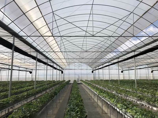 薄膜連棟溫室可作為生產育苗型溫室,用于花卉、蔬菜、苗木的種植栽培,其覆蓋材料的多樣性,決定了該類溫室的適用性。既適合不同要求的使用單位,又適合不同氣候地區。即用戶可根據自身的經濟實力和用途來選擇覆蓋材料和配套設備,以求達到各自的使用目的。